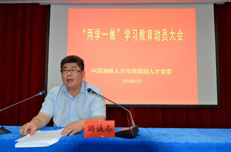 中国海峡人才市场党组成员、机关党委书记、海峡人才市场副总经理游诚志作“两学一做”学习教育动员报告